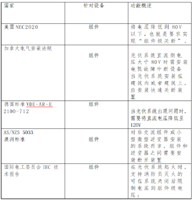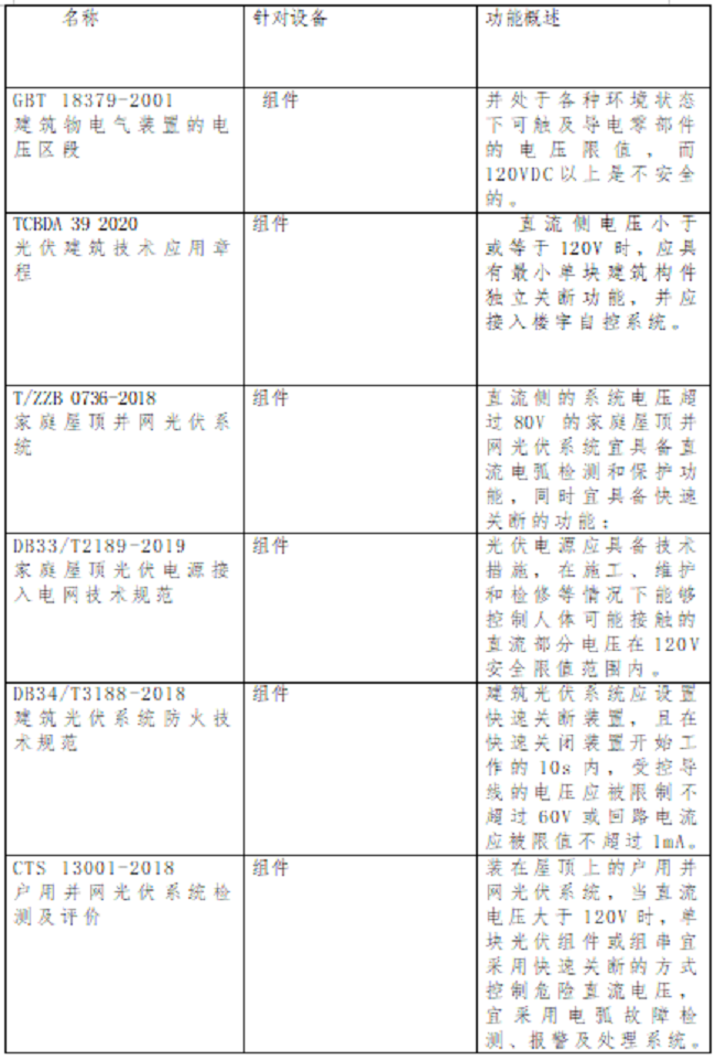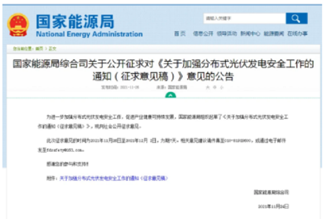 2021年11月26日,国家能源局发布了关于公开征求对《关于加强分布式光伏发电安全工作的通知(征求意见稿)》意见的公告。其中,在“项目设计管理”相关章节中明确要求:安装电弧故障断路器或采用具有相应功能的组件,实现电弧智能检测和快速切断功能;光伏组件应具有安全关断保护功能,保证逆变器关机,交流断电后,系统子阵外直流电压低于安全电压。