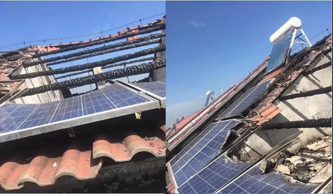 三、棚顶脆弱,组串的电弧火花会烧穿棚顶进入内部
