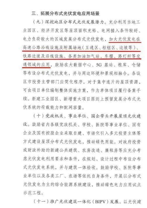 其实不止国外,2021年以来,我国也出台了不少支持光伏车棚建设的政策,其中,2021年8月25日,江苏省发改委印发《关于支持我省光伏发电发展的若干意见(征求意见稿)》,明确指出,加大光伏发电在高速公路沿线、铁路边坡及沿线设施、各类加油加气站、车棚、路灯杆等交通领域的应用。