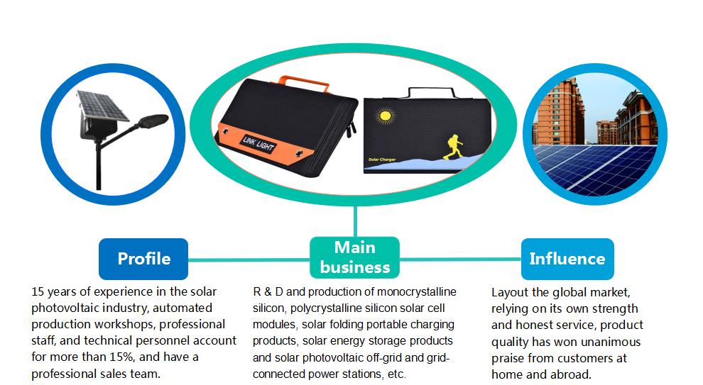 Dongguan LinkLight Solar Technology Co., Ltd. located in Dongguan, a famous manufacturing city in Guangdong Province, is a high-tech enterprise based on scientific and technological innovation, production and sales of outdoor solar photovoltaic series application products based on advanced production technology and professional service team.
