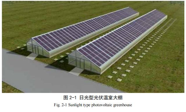 。日光型光伏温室多采用一面为采光面,一面为保温面设计(含有保温蓄热墙体),可以根据采光和用电需求设置光伏电板的放置,光伏电板放在采光面,则温室属于全遮光型;放置在保温面则为半遮光型。连栋型光伏温室,主体结构采用铝合金和镀锌钢材为主,透明的墙体材料以薄膜、太阳板或玻璃为主,建造外形为拱圆形和屋脊型为主,其建造面积相当于多个独栋温室的结合,温室内具有多种智能管理系统,如:二氧化碳调节系统、通风系统、智能控温系统、病虫害防治系统、灌溉系统等智能系统,为这种大面积温室提供智能管理,正是基于这种智能管理系统使连栋温室具有投入大、效益大、产量高的的特点,相对于单体温室它还拥有更大的温室面积和光照面积,在我国具有广大的温室面积,依靠其自身的优势,光伏温室在我国农业温室应用中广受农民欢迎。