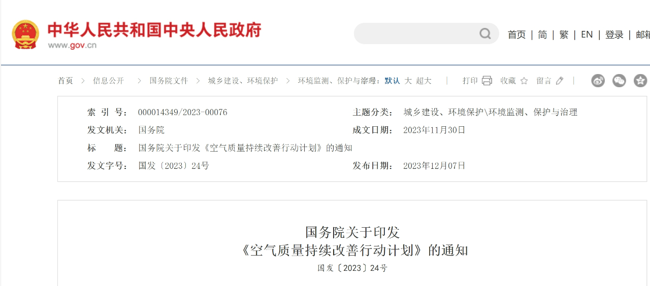 现将《空气质量持续改善行动计划》印发给你们,请认真贯彻执行。