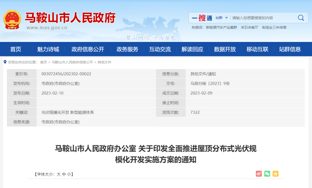 日前,日前,马鞍山市发展和改革委调查征集《全面推进屋顶分布式光伏规模化开发实施方案》意见建议。实施方案提出,按照“政府引导、多方参与、政策支持”的方式,鼓励多方资本参与,探索集投资、建设、运营为一体的专业屋顶分布式光伏发展模式。发挥各自优势,共同推进全市屋顶分布式光伏项目的开发、建设和运营。